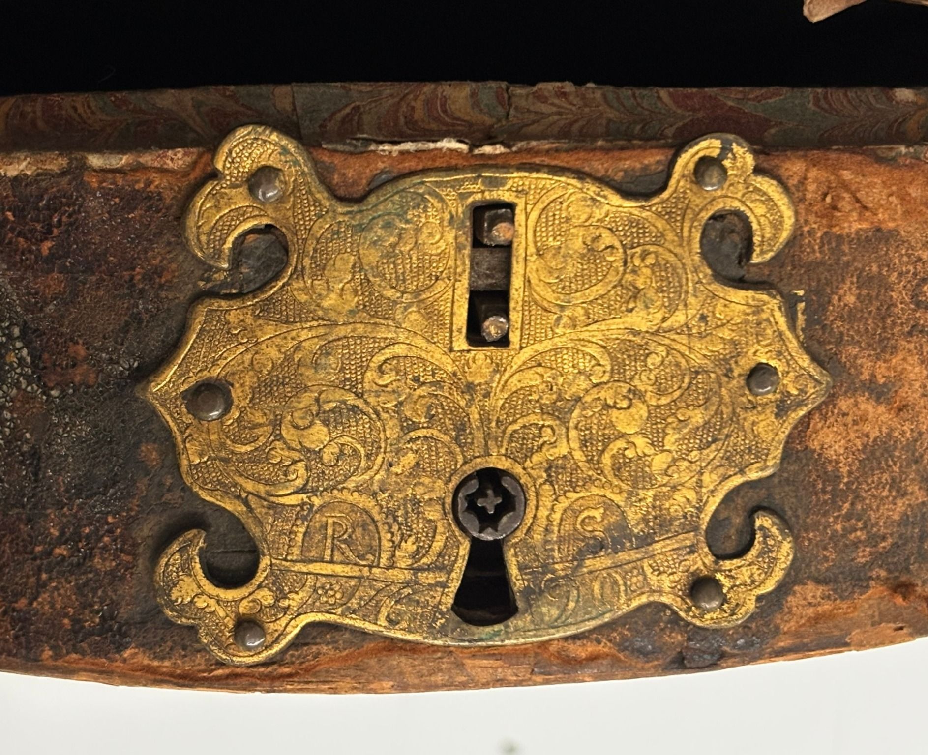 6. The escutcheon on the Charter Box with RS and 1690